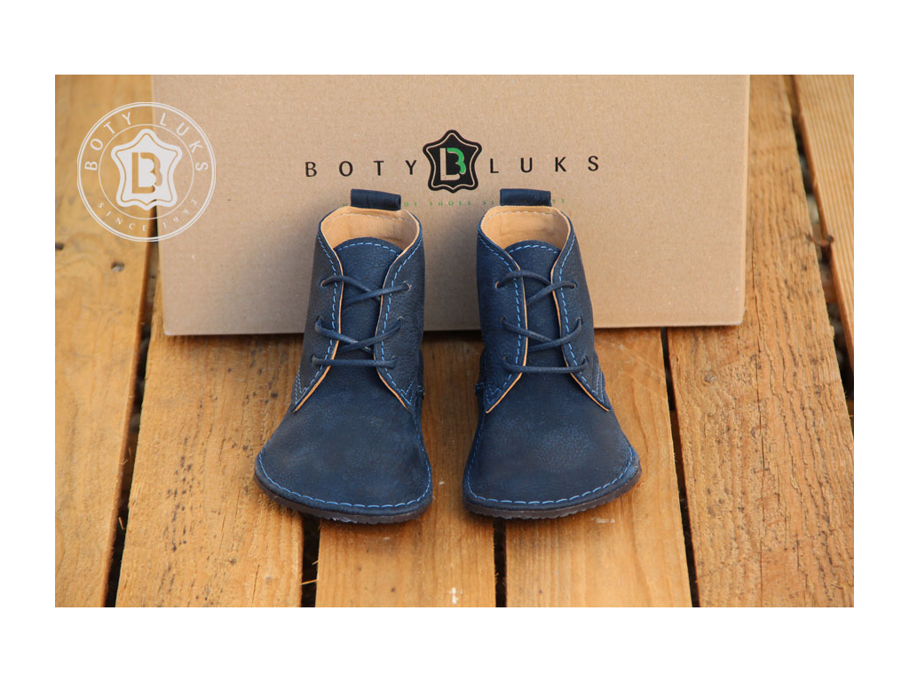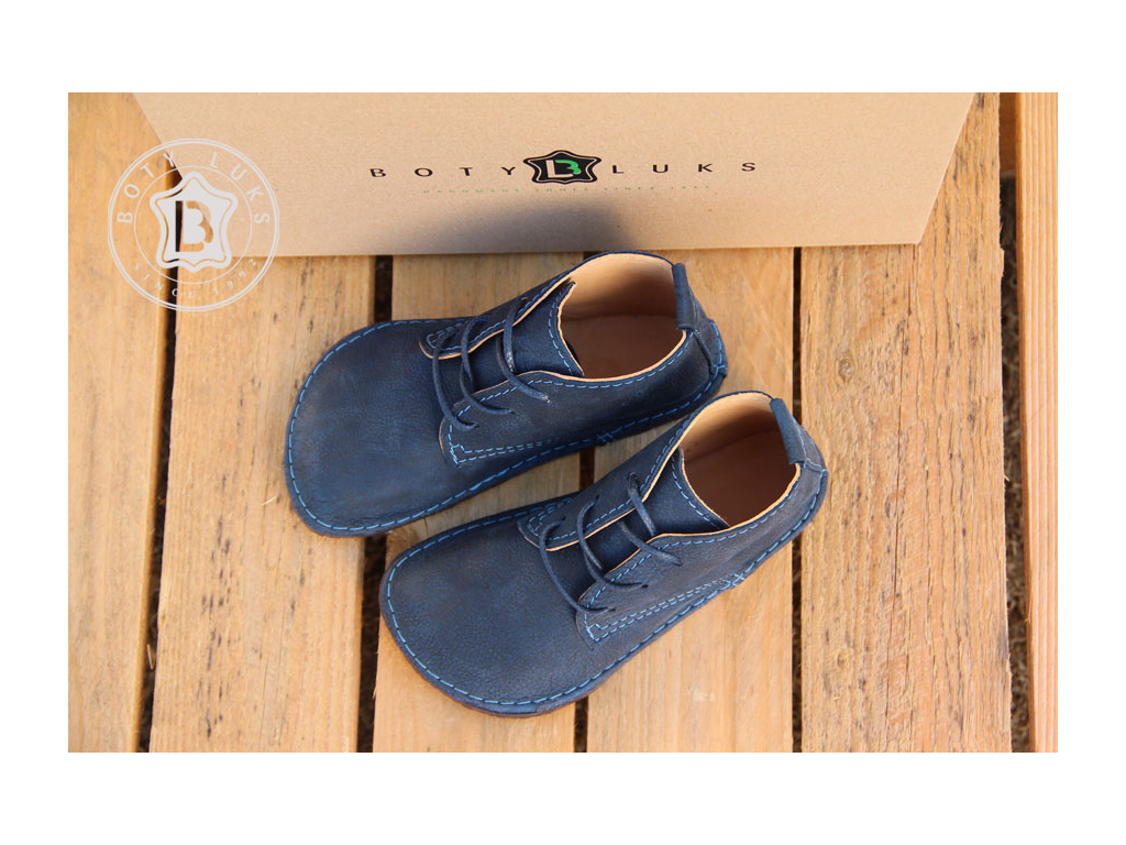 Dětské barefoot botičky umožňující správný rozvoj dětských nožiček. Špička je navržena podle skutečného dětského chodidla.Vrch je kožený v tmavě modrém provedení. Podrážku tvoří 4mm měkká plotna. 100% voděodolné.