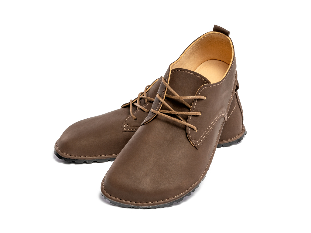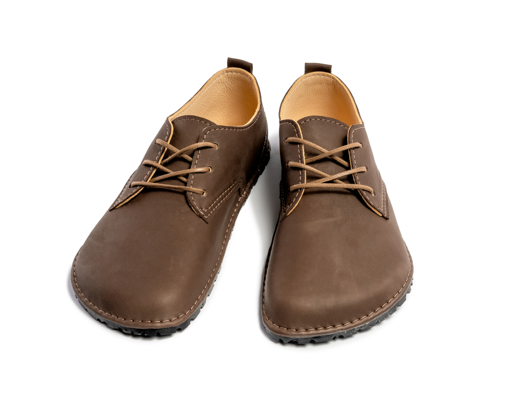 Pánské všestranné barefoot boty z luxusní tmavě hnědé kůže jsou prvními svého druhu s anatomickým tvarem špičky, podle skutečného tvaru chodidla. A přitom na noze vypadají skvostně. Úplně nejvhodnější jsou pro typ chodidla s dominantním palcem. Avšak ani chodidla s dominantním ukazovákem nemusí zoufat, stačí si pouze zvolit o něco větší nadměrek, aby ukazovák nenarážel na stěnu boty.