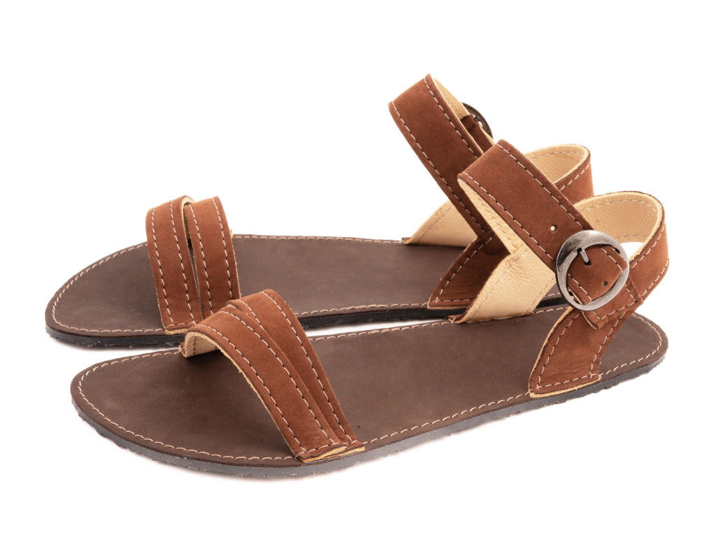 Barefoot sandálky Jsou přilepené na 4mm ohebné plotně tmavě hnědé barvy.