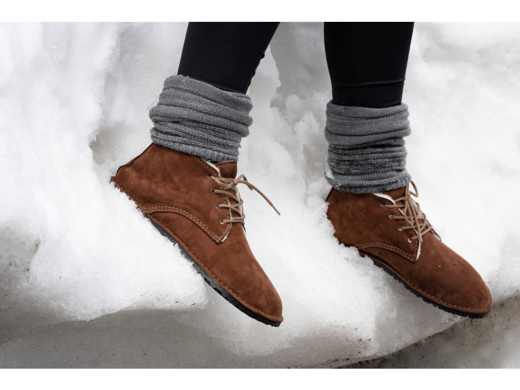 Barefoot mokasíny jemně obepínají nárt i patu. Nevyzouvají se. Před prsty zůstává menší nadměrek. Kůže je měkká, příjemná a boty ještě o několik mm povolí.